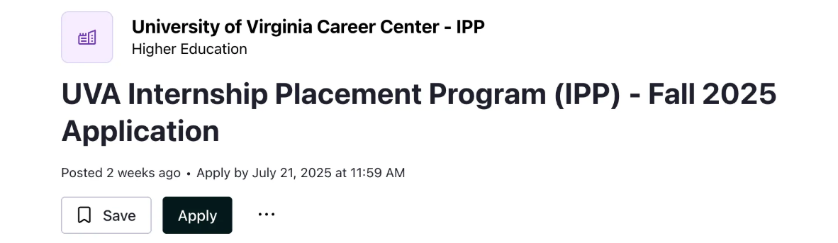 在 Handshake 上搜索并提交: “UVA Internship Placement Program (IPP) - Fall 2025 Application”